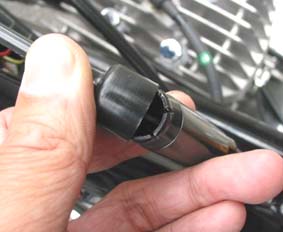写真24 キャブにインレットパイプを留めるリングが巻きつけてありますが |