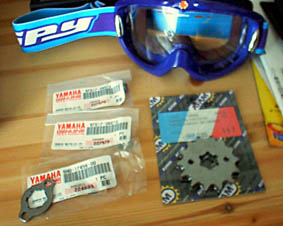 セロー純正は15Tしかなかったので手裏剣メーカー AFAM のん使用。 TY125も共通って書いてありますねぇ。 |
